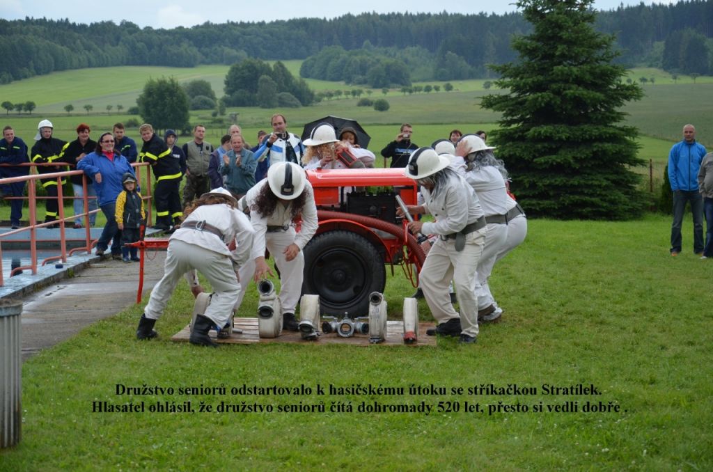 Takže ke cvičení na župním sjezdu, který se po 34 letech konal obět v naší obci dne 15. července 1934 nastupovalo hasičské družstvo s novým, na tehdejší dobu, velmi moderním vybavením. Musíme říci, že 80-ti letý Stratílek je i v dnešní době po celkové rekonstrukci provozuschopný, a je stále opatrován v naší hasičské zbojnici. K vidění je i dnes venku před hospodou a budete jej mít možnost vidět i v akci při dnešních závodech v „netradičním“ požárním útoku, které začnou v 15:00 hodin.