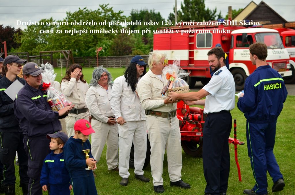 . Mám za to, že náš sbor, který patří mezi menší sbory v okrese PJ a má k dnešnímu dni 37 členů vykonal za dobu své existence velký kus práce. Tato dnešní zpráva nemůže však obsáhnout všechny úkoly a činnosti, které sbor dobrovolných hasičů ve Skašově za 120 let vykoval. Věřím,že všichni skašovští hasiči za podpory členů zastupitelstva obce si svůj sbor dobrovolných hasičů uhájí pro další generace ve prospěch našich spoluobčanů, tak jako jej naši předkové hájili před 120.lety. K tomu Vám všem přeji mnoho zdraví, hasičům úspěchy na poli doufejme opět i sportovním, aby práce hasičská byla pro každého hasiče koníčkem a zábavou bez ničivých požárů a živelních pohrom. V dnešním slavnostním odpoledni Vám všem přeji příjemnou pohodu, dobrou zábavu v našem kulturním a sportovním areálu koupaliště a skašovským soutěžním družstvům hasičů úspěch v soutěži v dnešním „netradičním“ požárním útoku.